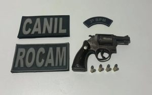 Diante da denúncia, os militares se deslocaram até o Conjunto Mata Atlântica I, localizado na Avenida Imbira. Ao chegarem ao endereço, encontraram o suspeito na porta da residência, consumindo bebida alcoólica e com o som em volume elevado.