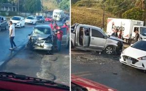 Testemunhas presenciaram o acidente no km 443,7, no sentido Sul. Três veículos teriam se envolvido. O primeiro carro estava na contramão e bateu na lateral de outro que seguia no sentido correto, um casal estava no veículo e o motorista sofreu ferimentos leves.