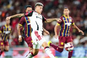 Já na reta final de partida, Samuel Lino marcou. O atacante foi acionado, conduziu para o lado direito e chutou para dar números finais ao jogo: 8 a 0.